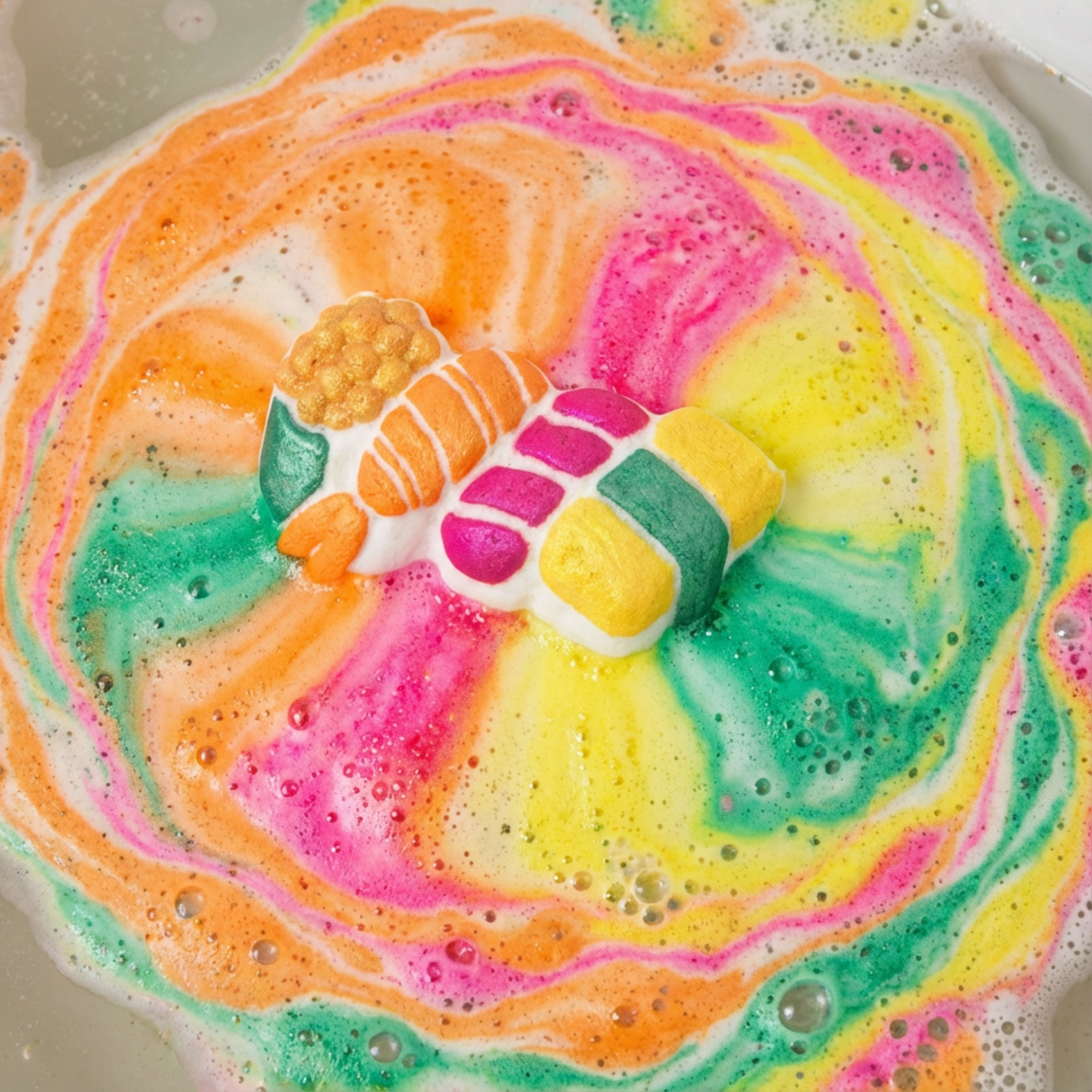 3. Unmold carefully to reveal a full sushi tray in bath bomb form.
